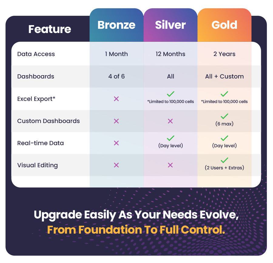 Every attraction is different, which is why Venpos Insights offers a three-tiered framework to suit your current needs and grow with your goals.